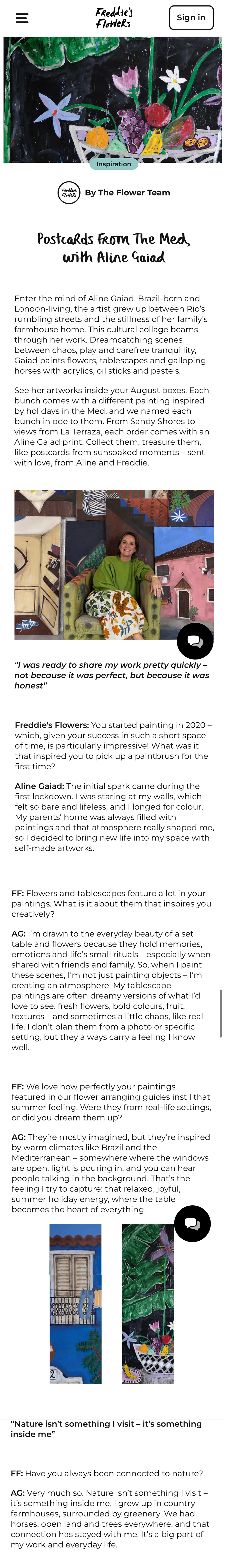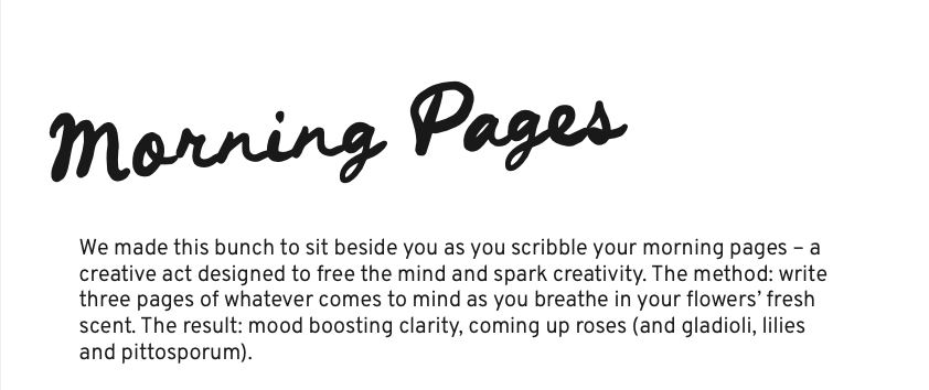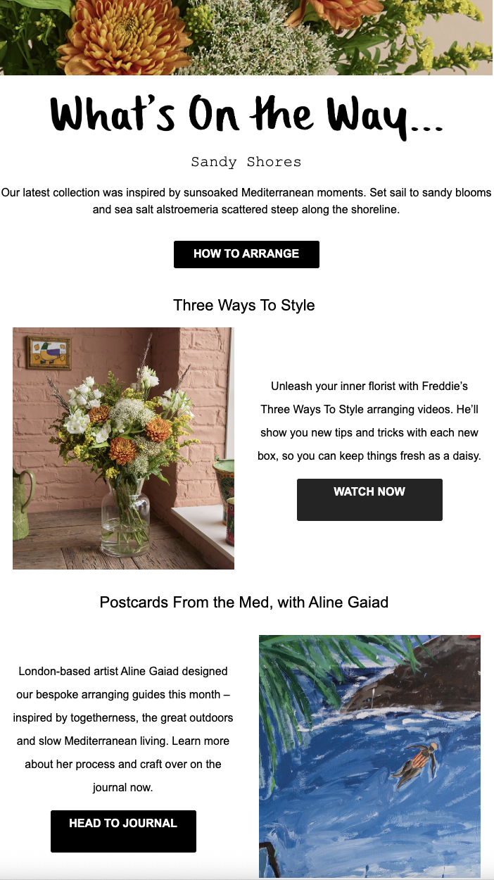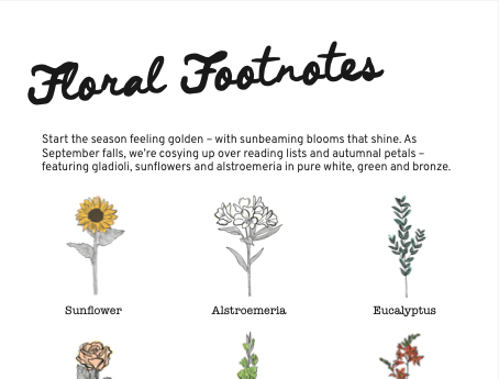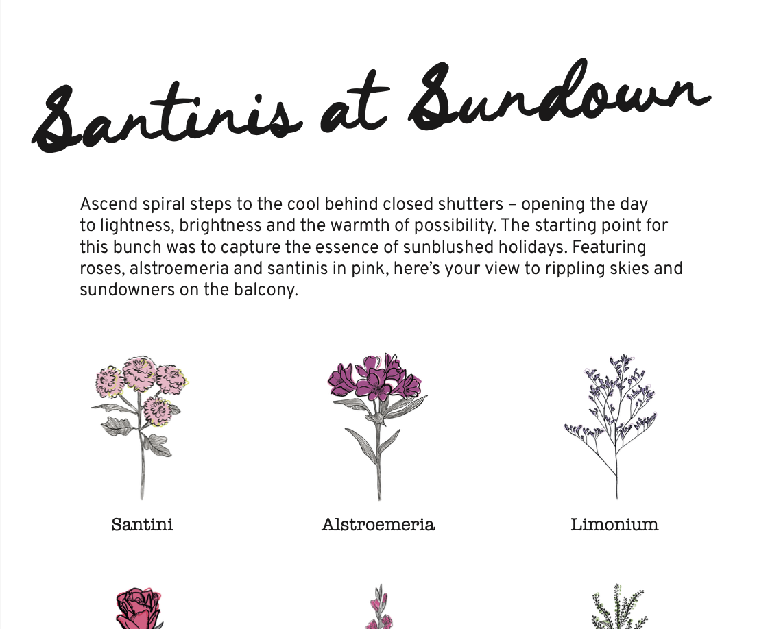Each month, Freddie’s drop a new collection (of 4-6 bunches) with a different creative concept. Each concept is reflected in the collection’s product names, product descriptions and printed artworks, inspired by the pre-planned stems featuring in each bunch