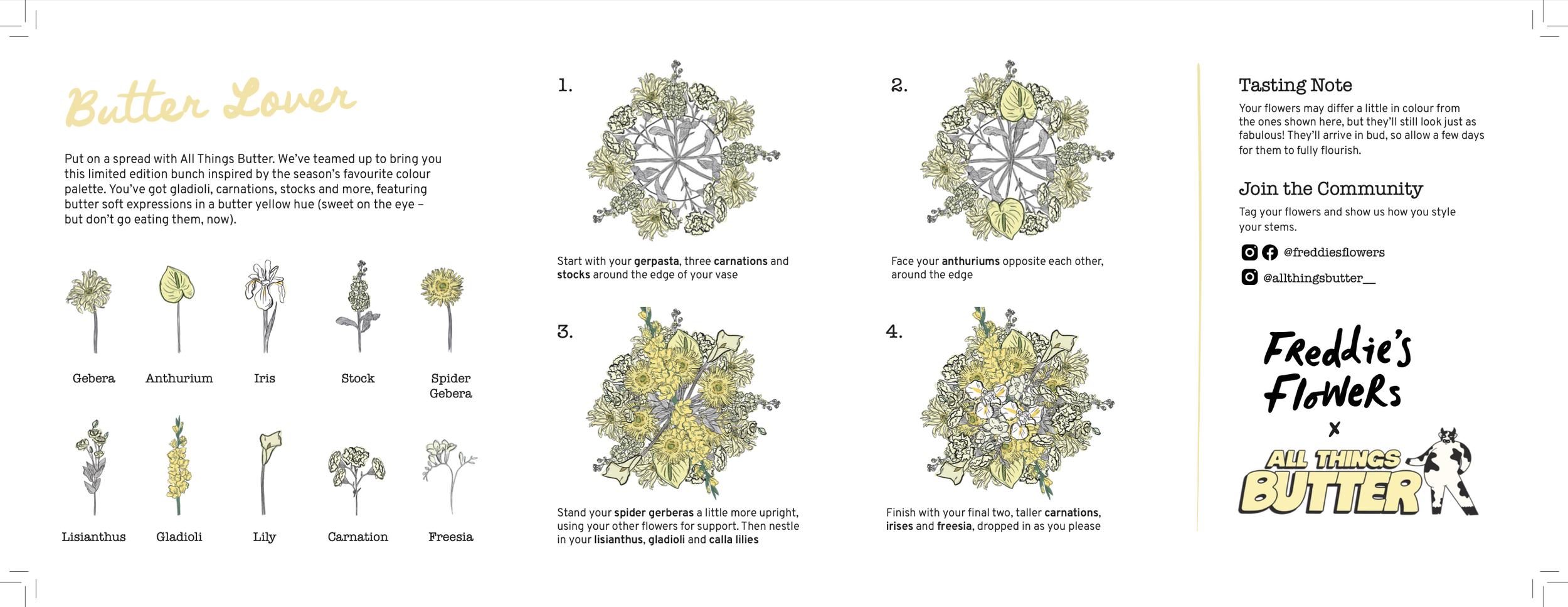 Below is the arranging guide for a one-off bunch created in collaboration with All Things Butter