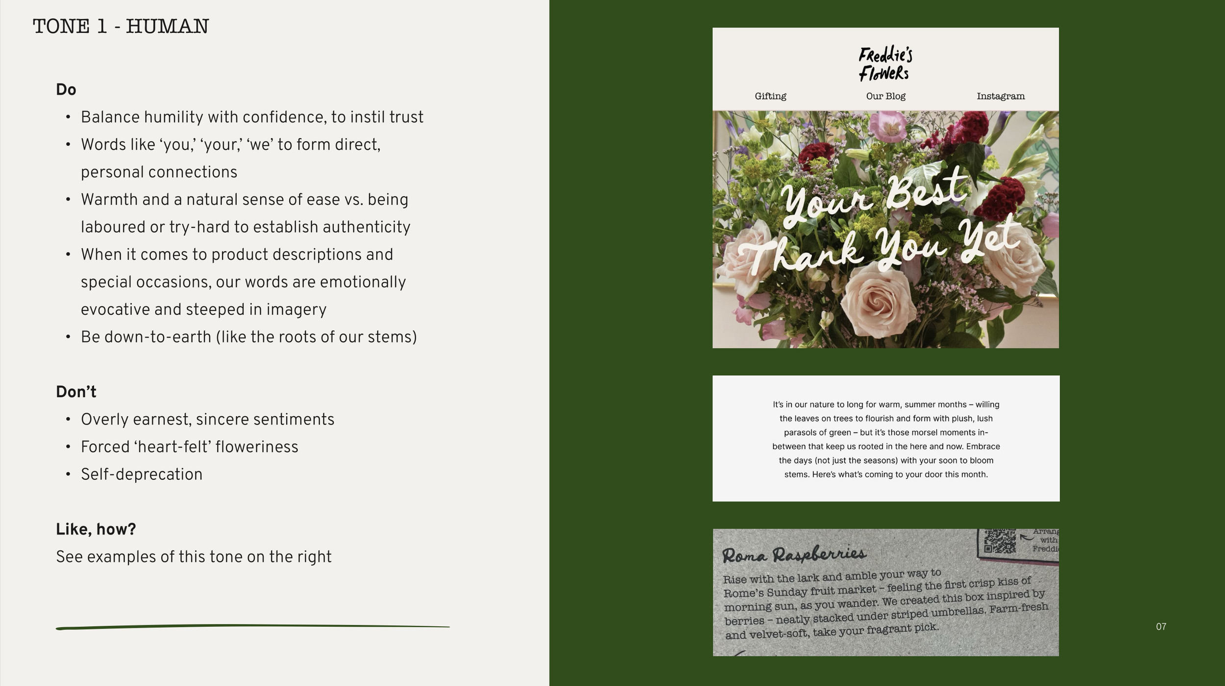 FREDDIE’S FLOWERS: BRAND TONE OF VOICE BOOK