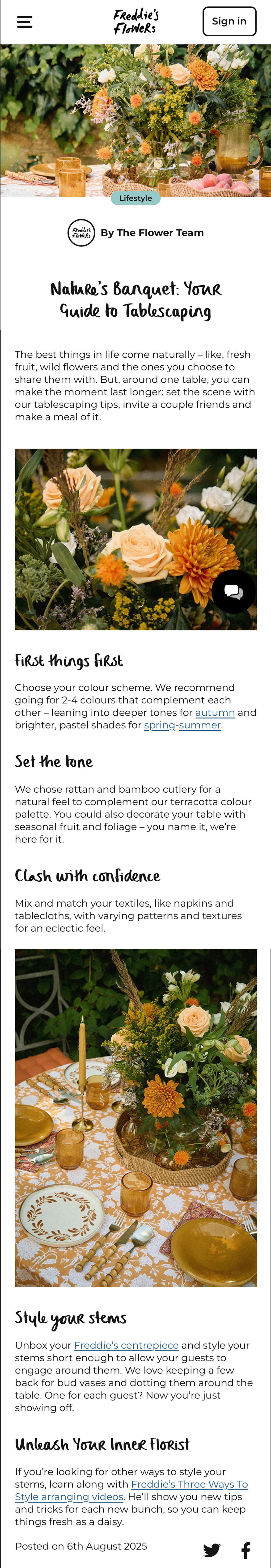 Each Freddie’s Flowers order comes with a bespoke arranging guide with instructions on how to style your chosen bunch. Unleash your inner florist with Freddie’s tips